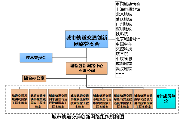 城市軌道交通創(chuàng )新網(wǎng)絡(luò )由管理委員會(huì )、技術(shù)委員會(huì )、創(chuàng )新網(wǎng)絡(luò )中心及成員單位構成,實(shí)行管理委員會(huì )領(lǐng)導下的城軌創(chuàng )新網(wǎng)絡(luò )中心主任負責制。管理委員會(huì )由中國城市軌道交通協(xié)會(huì )牽頭組建,是城市軌道交通創(chuàng )新網(wǎng)絡(luò )的決策機構;技術(shù)委員會(huì )由城市軌道交通領(lǐng)域專(zhuān)家組成,主要為城市軌道交通創(chuàng )新網(wǎng)絡(luò )技術(shù)發(fā)展方向、承擔重大任務(wù)等提供咨詢(xún);城軌創(chuàng )新網(wǎng)絡(luò )中心有限公司主要負責貫徹落實(shí)管理委員會(huì )的重大決策。