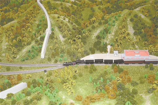 京張鐵路記憶館內展陳的京張鐵路“人”字形線(xiàn)路沙盤(pán)。高 磊 攝