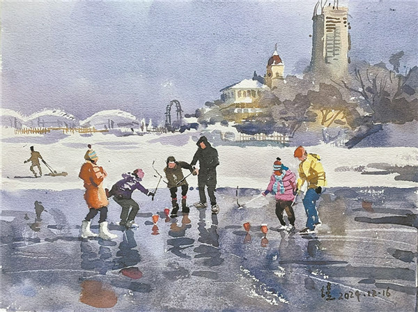 水彩畫(huà)欣賞:冰雪之城的魅力與風(fēng)情