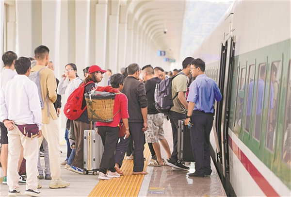 9月20日,旅客在中老鐵路普洱站乘車(chē)。